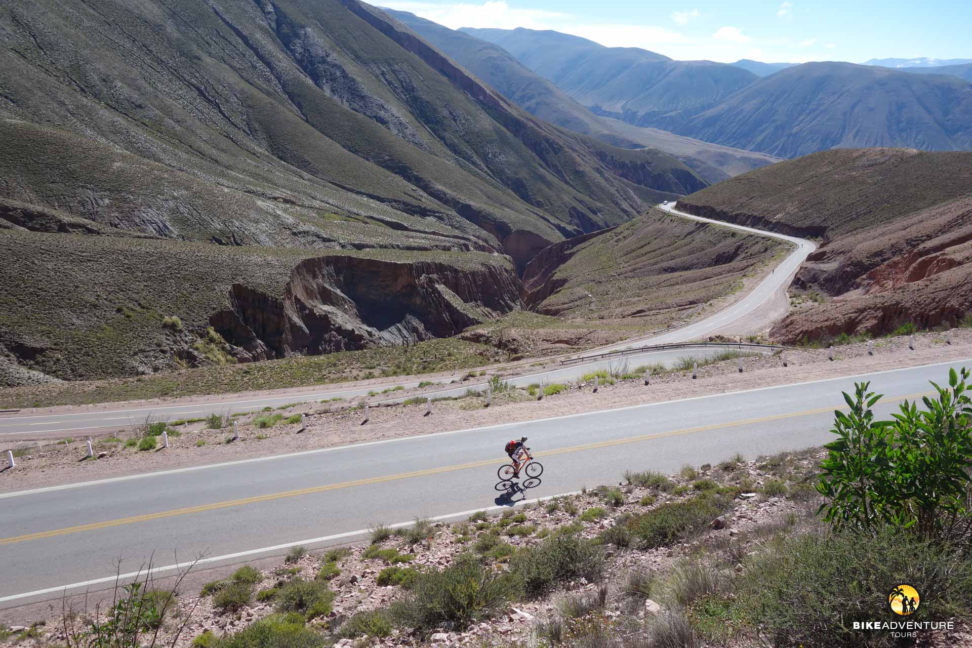 Ab heute geht’s nur noch aufwärts! Wir folgen dem Haupttal nach Norden in Richtung Bolivien. Die Quebrada Humahuaca (Unesco-Weltkulturerbe) beeindruckt uns mit gewaltigen Felsformationen in den verschiedensten Farben. Durch das langsame Biken gelangen wir aus eigener Kraft in immer grössere Höhen, so dass die Akklimatisation ideal verläuft. Vorbei an der Inka-Stadt Tilcara und dem südlichen Wendekreis biken wir durch die Gebirgslandschaft der Anden.