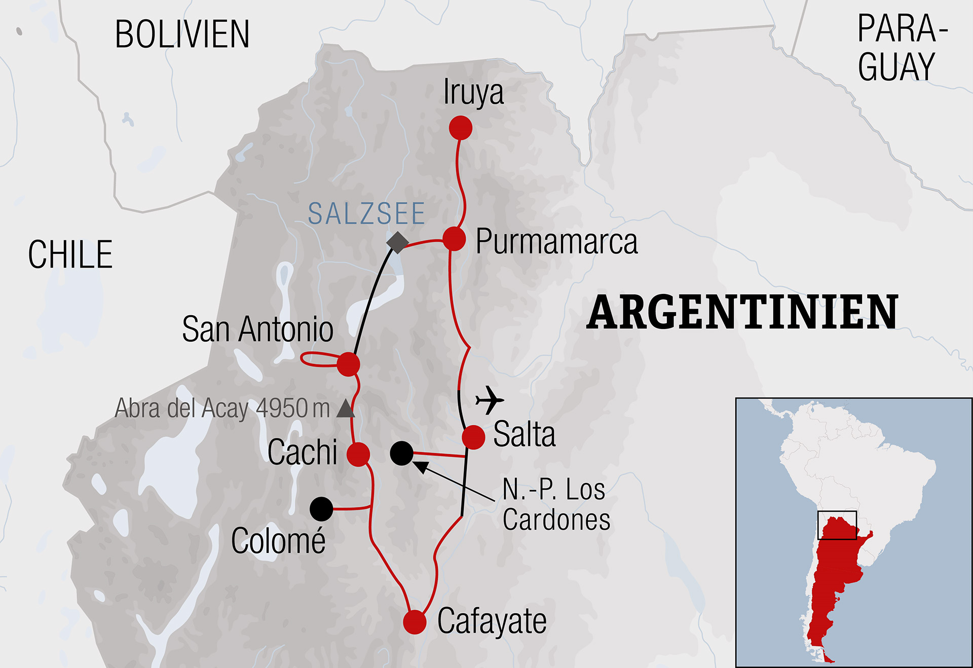 Argentinien nördlicher Altiplano und Anden-Überquerung