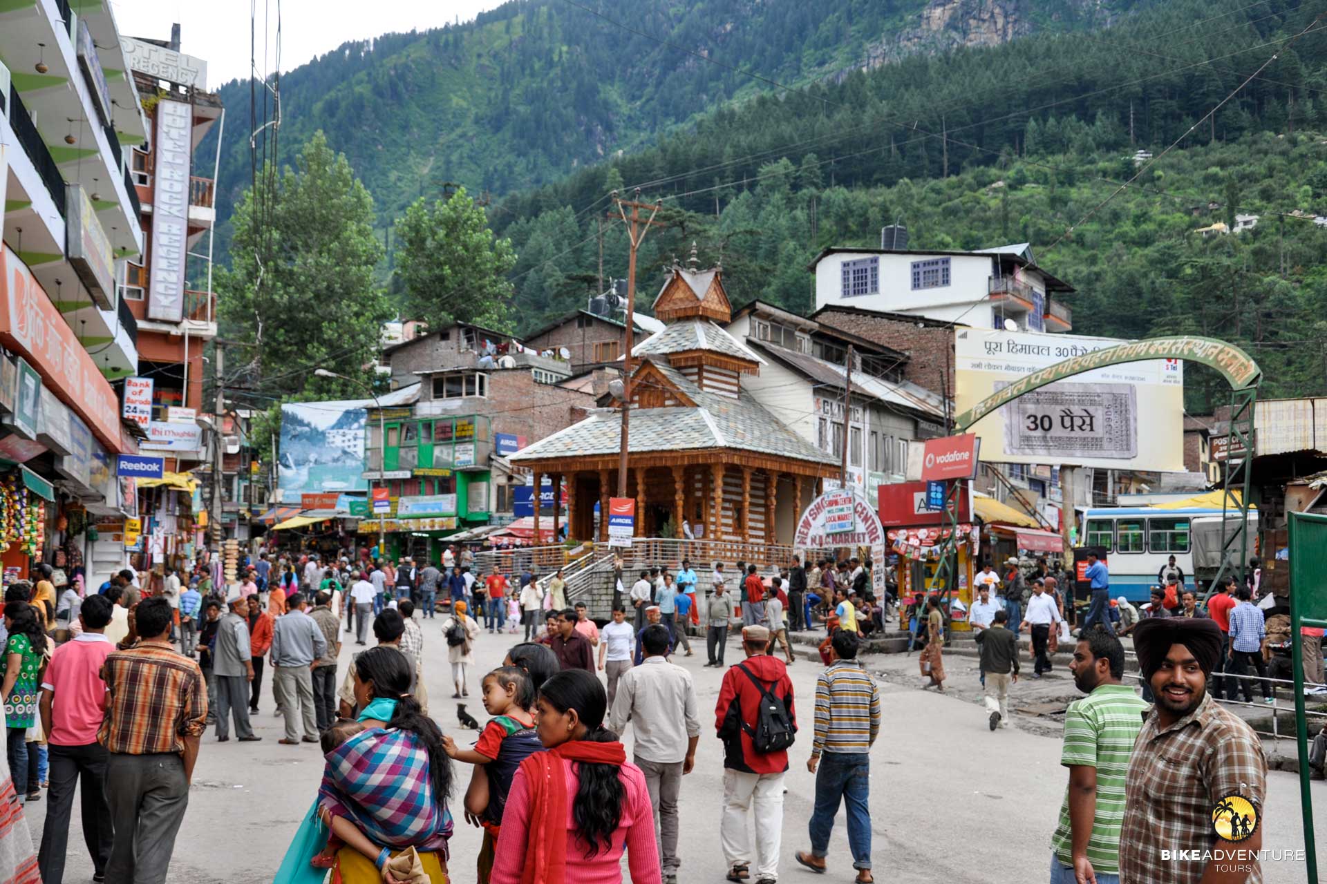 Das quirlige Städtchen ist ein beliebter Höhenkurort bei indischen wie auch westlichen Touristen und liegt auf 1900 Metern. Die umliegende Landschaft erinnert uns an die Schweizer Bergwelt. Wir machen unsere Bikes bereit und gehen auf eine kleine Ausfahrt. Auf unserer ersten kurzen Bike-Akklimatisationstour besuchen wir die Sehenswürdigkeiten der Stadt und der Umgebung. Unter anderem den Hadimbatempel. Wir treffen unsere Begleitmannschaft, die uns während den nächsten gut zwei Wochen begleiten wird.