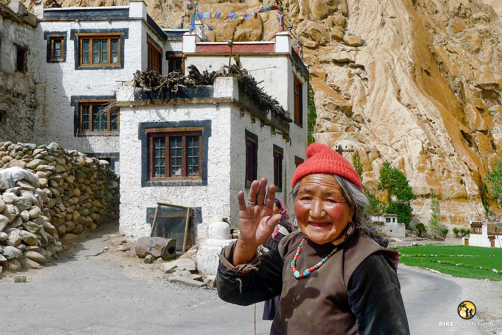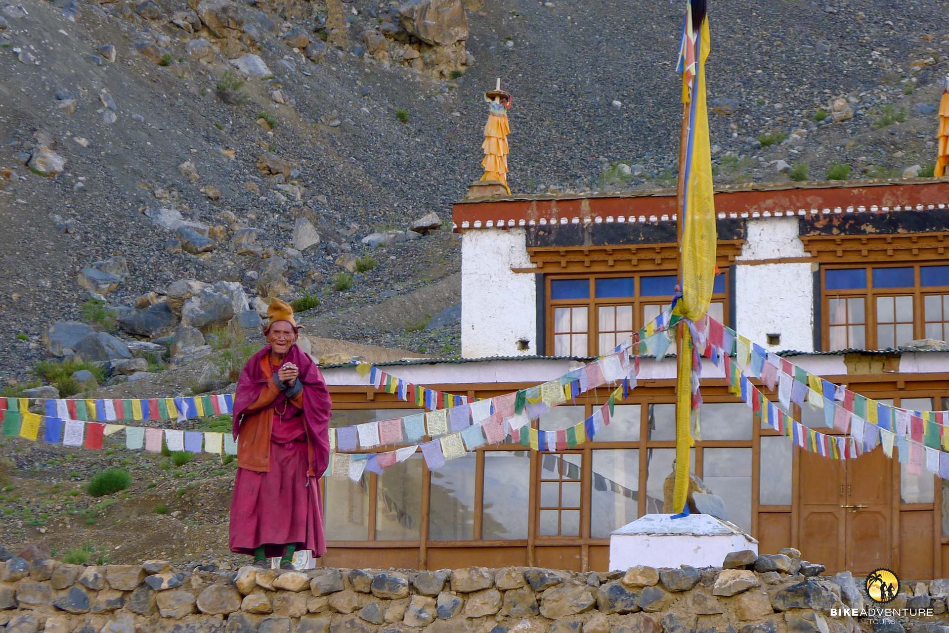 Am frühen Morgen verlassen wir Yulchung und unser Blick schweift in die Ferne, wo wir die Serpentinen des Singi-La entdecken. Es erwartet uns ein Aufstieg auf den knapp 5000 m hohen Pass. Die Gebetsfahnen auf dem Pass sehen wir schon von Weitem wehen. Atem für Atem, Pedal- um Pedalumdrehung schrauben wir uns langsam in die Höhe. Was für ein majestätisches Gefühl uns überkommt auf der Passhöhe angekommen zu sein. Nach einer Abfahrt von 20 km erreichen wir Photoksar, wo unsere Begleitmannschaft das Zelt etwas ausserhalb des Dorfs aufstellt. Was für eine grandiose Felsenlandschaft das Dorf umgibt. Die verschiedenen Farbtöne leuchten von Rot bis Grau. Wir sind uns einig, dies ist wiederum ein wunderbarer Campingplatz.