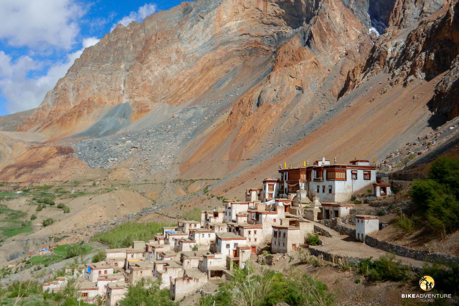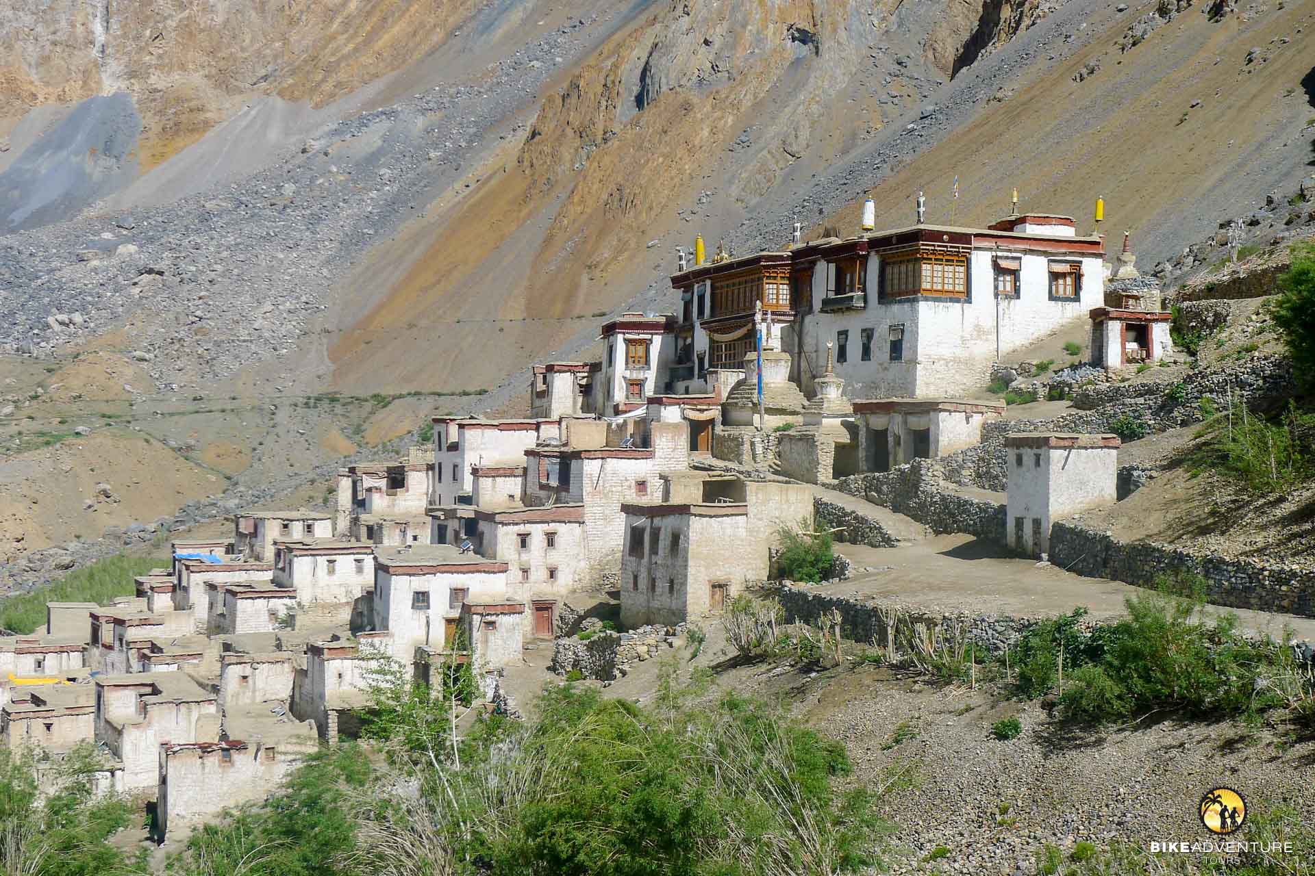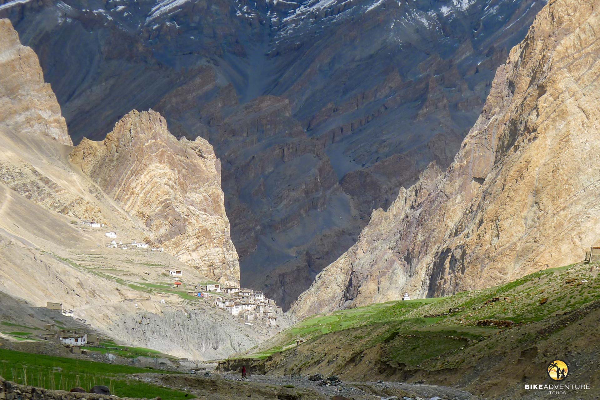 In Sissu steigen wir auf die Bikes. In stetigem Auf und Ab führt die Strasse auf der rechten Seite des Chandraflusses in die Gegend um Keylong. Der Weg windet sich weiter einer spektakulären Schlucht entlang, bis wir die ersten Schneeberge erblicken. Langsam weicht das letzte Grün der kargen Felslandschaft. Keylong taucht vor uns auf. Hier befinden sich gleich vier buddhistische Klöster.